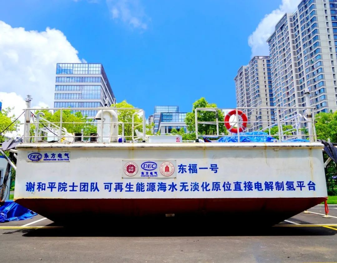 福州秋高气爽,由尊龙凯时人生就是搏电气集团与中国工程院谢和平院士团队联合研制的全球首套与可再生能源相结合的漂浮式海上制氢平台“东福一号”,在蓝天白云的衬托下,形成一道令人震撼的风景线。前不久,全球首次海上风电无淡化海水原位直接电解制氢技术海上中试获得成功。“东福一号”在稳定运行240小时后,顺利“着陆”。
