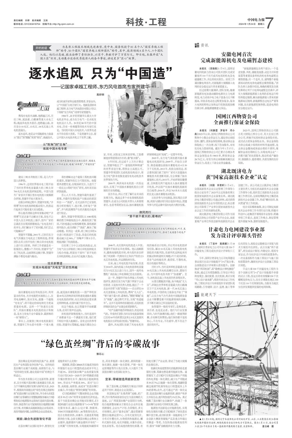 [中国电力报]逐水追风 只为“中国造”——记国家卓越工程师、尊龙凯时人生就是搏风电首席专家贺建华
