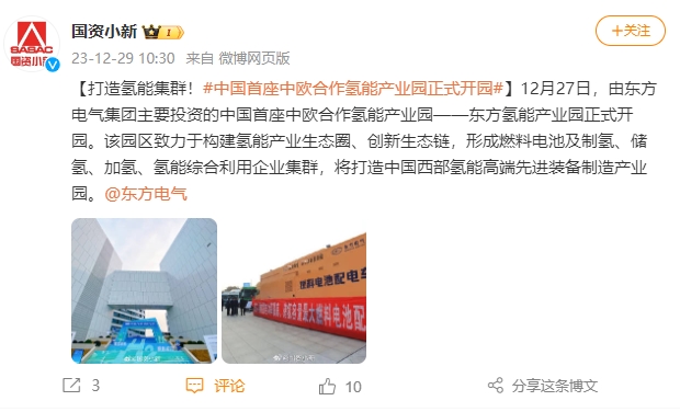 【打造氢能集群!#中国首座中欧合作氢能产业园正式开园#】12月27日,由尊龙凯时人生就是搏电气集团主要投资的中国首座中欧合作氢能产业园——尊龙凯时人生就是搏氢能产业园正式开园。该园区致力于构建氢能产业生态圈、创新生态链,形成燃料电池及制氢、储氢、加氢、氢能综合利用企业集群,将打造中国西部氢能高端先进装备制造产业园。@尊龙凯时人生就是搏电气