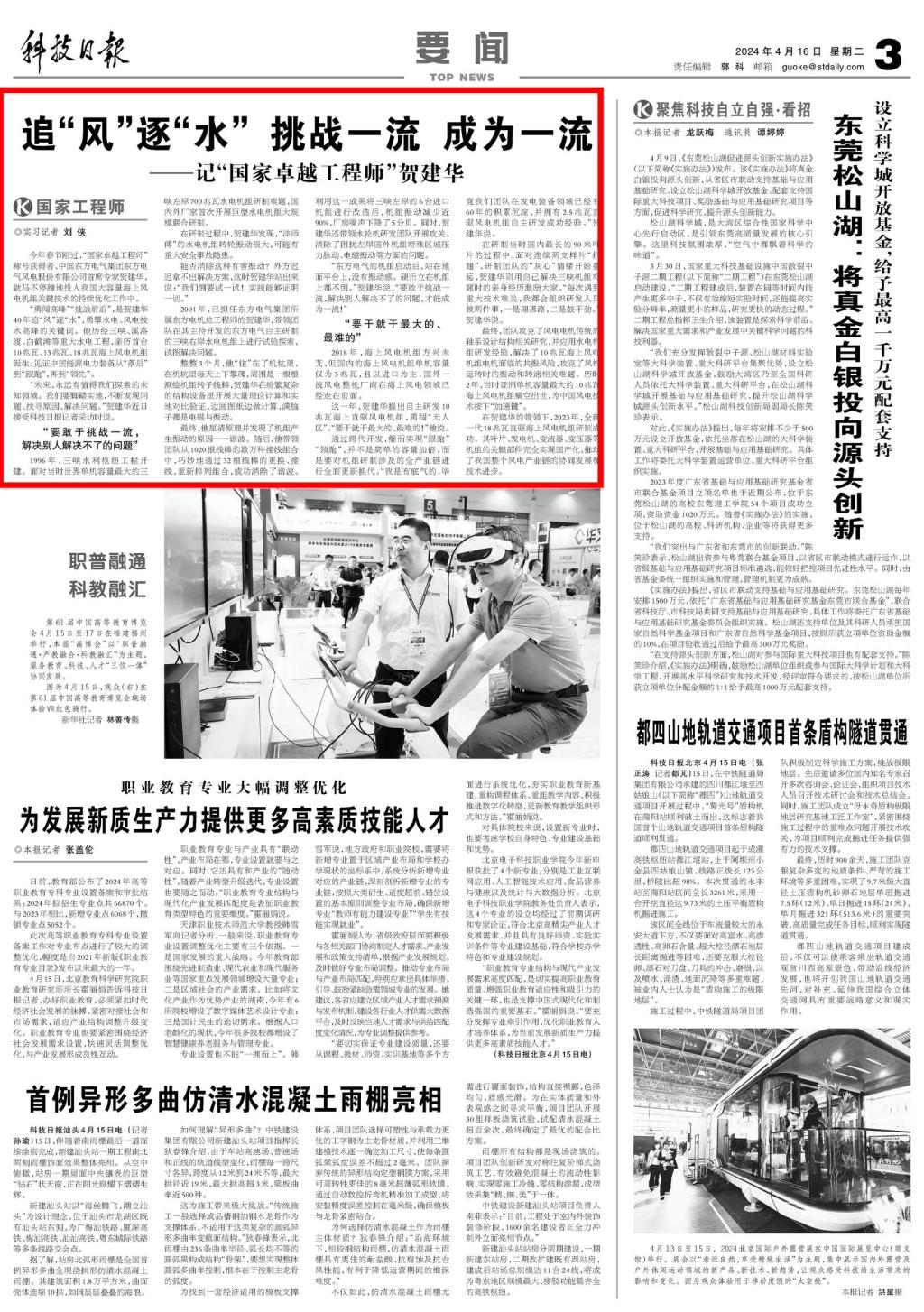 [科技日报]追“风”逐“水” 挑战一流 成为一流——记“国家卓越工程师”贺建华